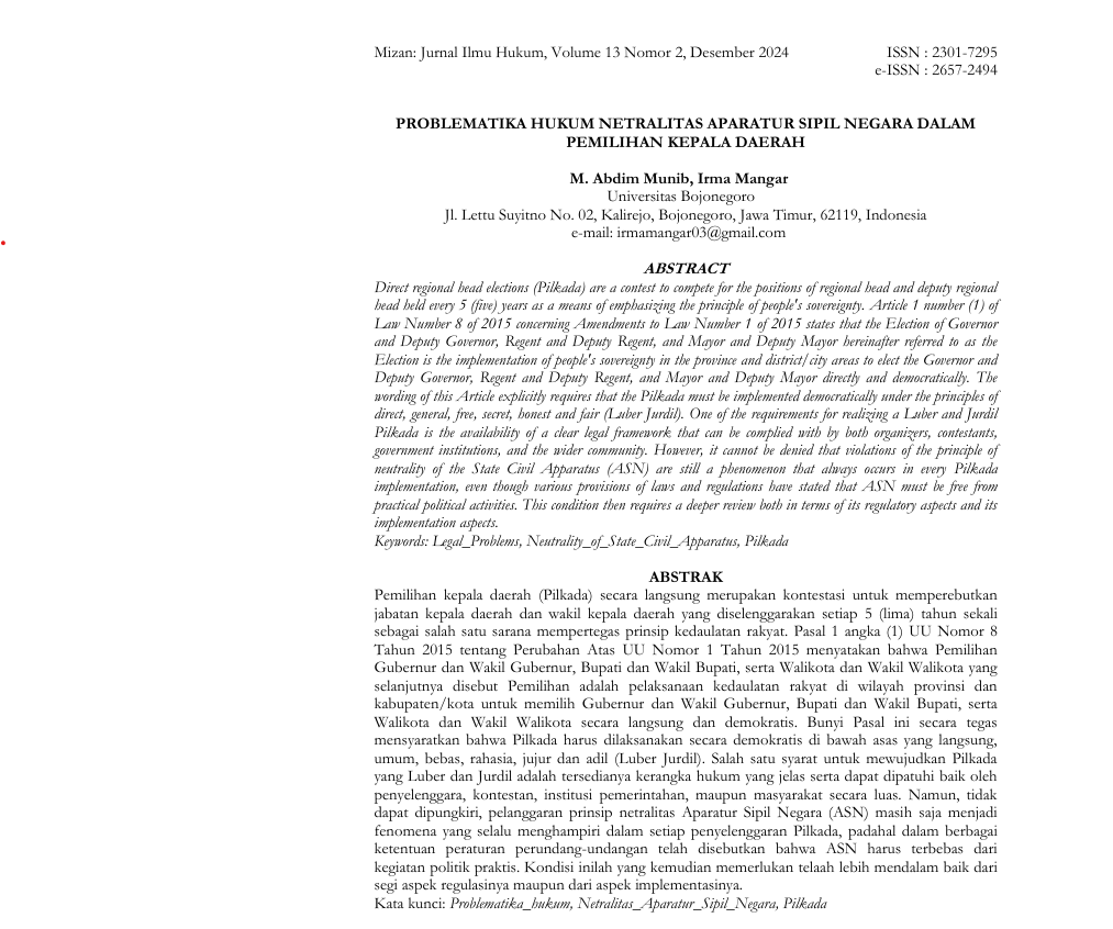 PROBLEMATIKA HUKUM NETRALITAS APARATUR SIPIL NEGAR...