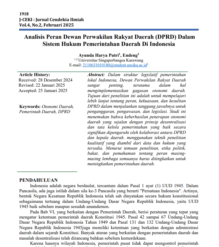 Analisis Peran Dewan Perwakilan Rakyat Daerah (DPRD) DalamSistem Hukum Pemerintahan Daerah Di Indonesia