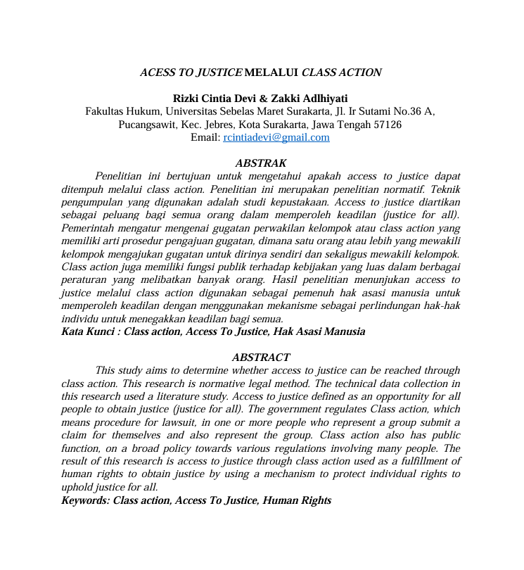 ACESS TO JUSTICE MELALUI CLASS ACTION