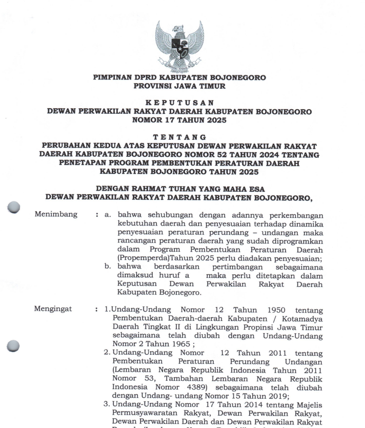 PERUBAHAN KEDUA ATAS PROPEMPERDA KABUPATEN BOJONEGORO TAHUN 2025